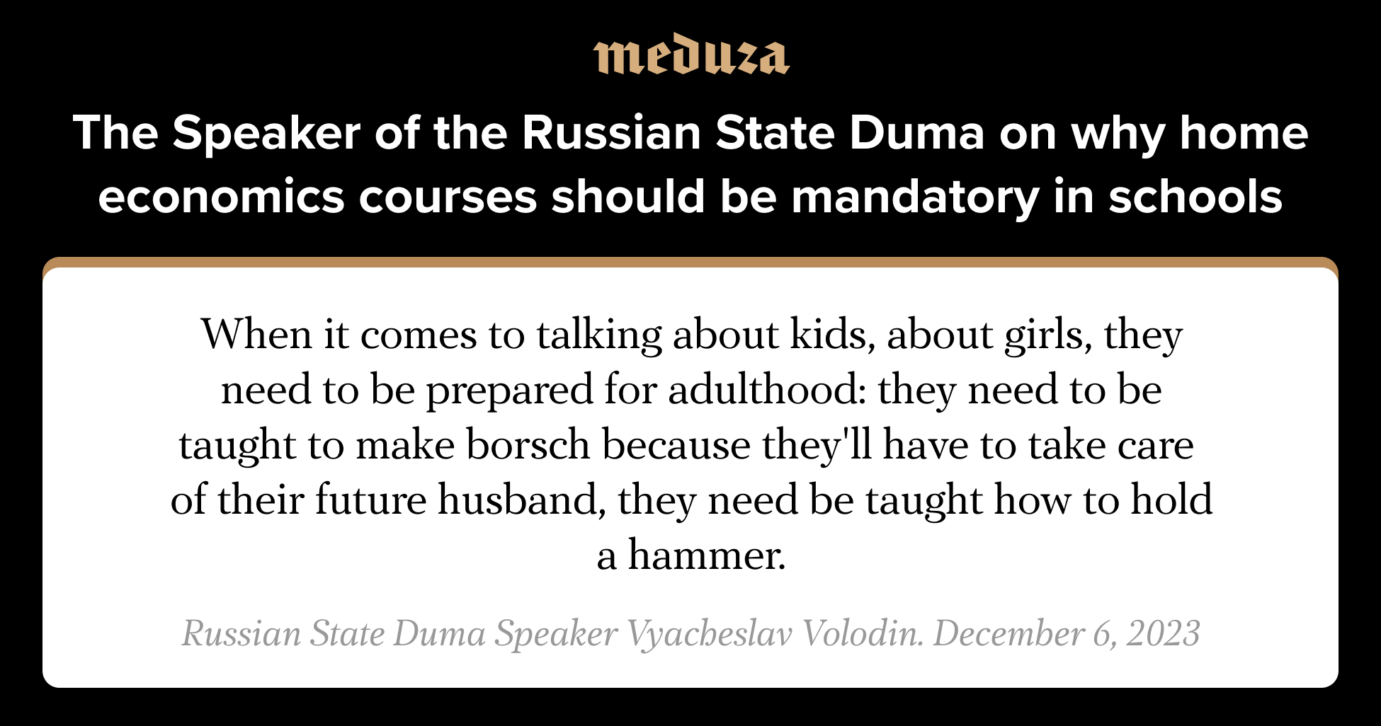 Making borsch and holding hammers The Russian State Duma Speaker on why home economics courses should be mandatory in schools