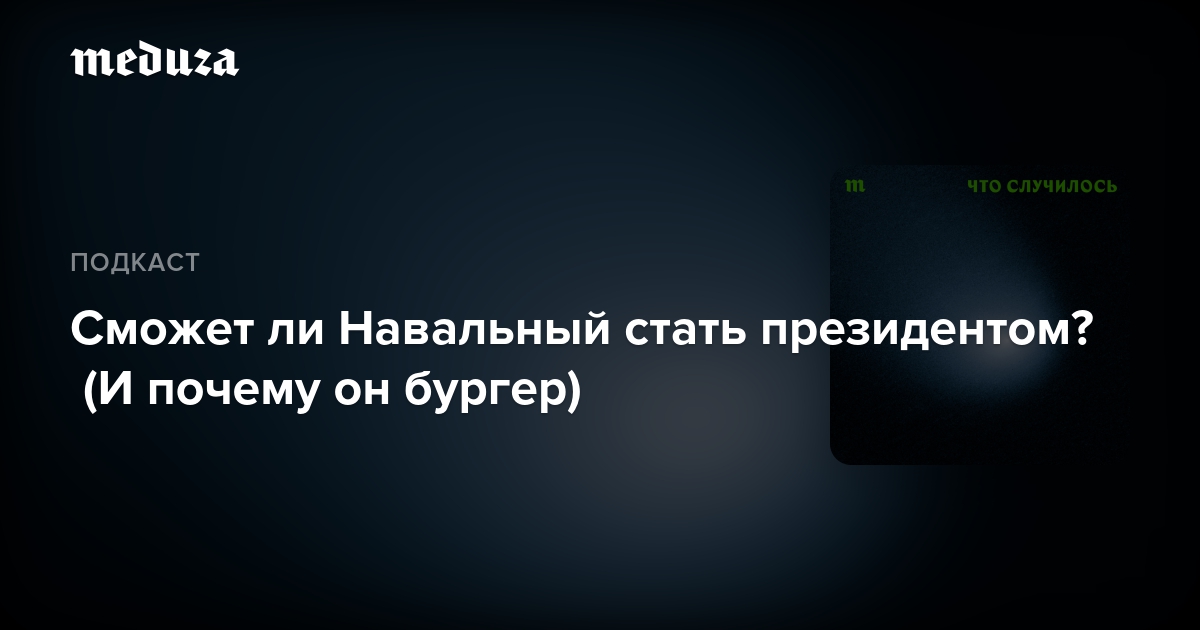 Гендиректор «Медузы» Галина Тимченко, главред Иван Колпаков и руководитель отдела видео и подкастов Лика Кремер обсуждают, как Алексей Навальный стал супергероем и учит Россию честной политической борьбе, чем его предвыборная программа похожа на рекламу бургера, почему у него практически нет конкурентов среди оппозиционных политиков, сможет ли он зарегистрироваться кандидатом на предстоящих президентских выборах и получится ли у него управлять страной в случае победы.