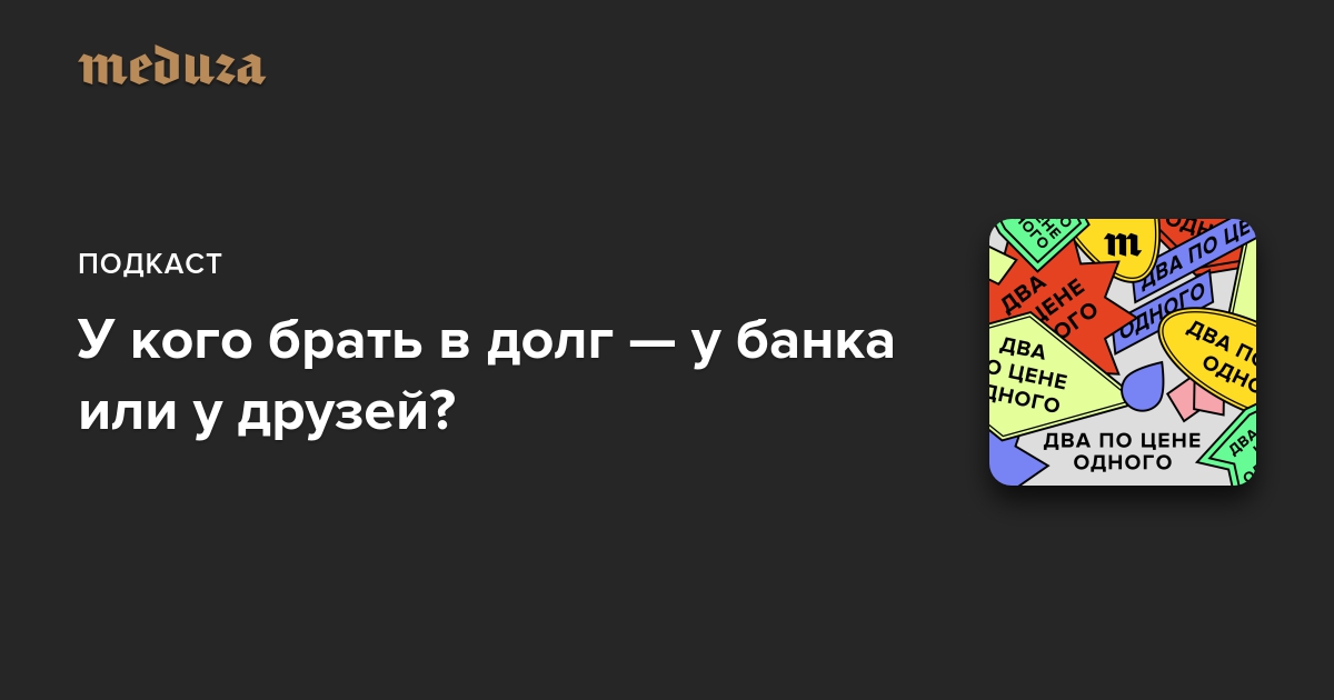 Издатель «Медузы» Илья Красильщик и заместитель главного редактора Александр Поливанов обсуждают, у кого лучше брать в долг, если уж возникла такая необходимость: у банка или у друзей.