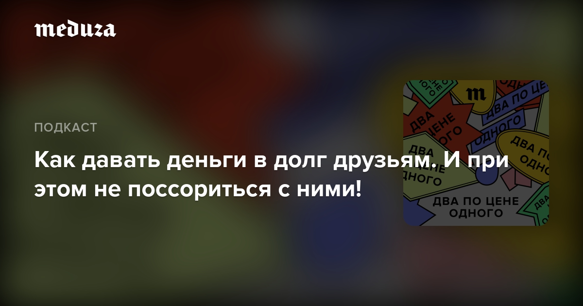 Издатель «Медузы» Илья Красильщик и заместитель главного редактора Александр Поливанов обсуждают, как правильно давать деньги в долг по дружбе (не путать с выпуском про то, у кого лучше брать деньги в долг!).