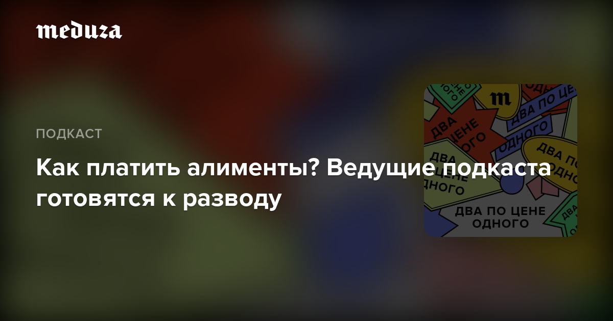 Издатель «Медузы» Илья Красильщик и заместитель главного редактора Саша Поливанов похмельно обсуждают финансовые отношения после развода — то, как лучше платить алименты (какое же все-таки противное слово!) и зачем они вообще нужны.
