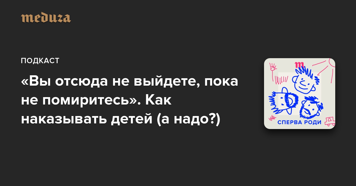 🎙 «Сперва роди» выходит по вторникам. Чтобы не пропустить новые эпизоды, подписывайтесь на подкаст в Apple Podcasts, «Яндекс.Музыке», Castbox и на «Букмейте». И не забывайте писать нам письма: в телеграм @meduzalovesyou (там можно отправлять аудиосообщения!) или на почту [email protected].