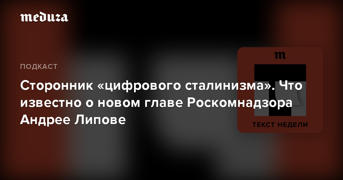 Журналист «Медузы» Мария Коломыченко в новом эпизоде «Текста недели» рассказывает о новом руководителе Роскомнадзора Андрее Липове. Он сменил Александра Жарова, который возглавил холдинг «Газпром-Медиа».