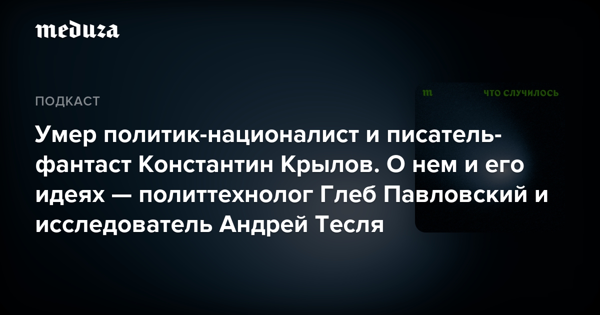 Во вторник, 12 мая, умер политик, публицист и мыслитель Константин Крылов. Он был одним из лидеров движения русских националистов, а также писал фантастическую прозу под псевдонимом Михаил Харитонов.