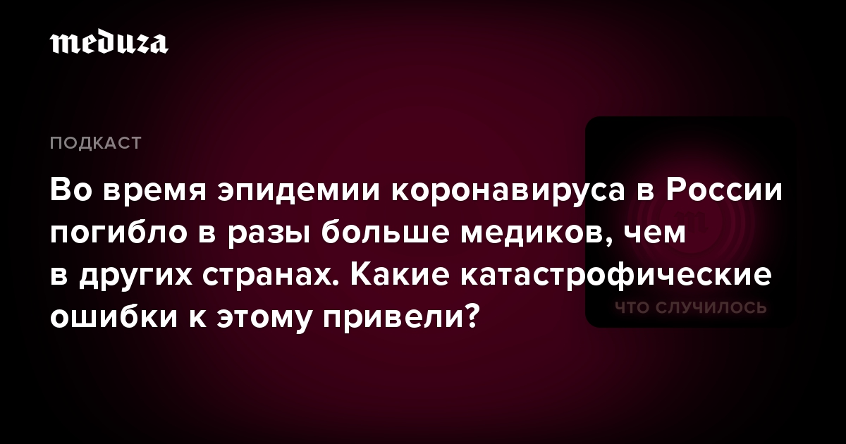 Во время пандемии коронавируса в России погибли десятки, а может быть, и сотни медиков. По подсчетам издания «Медиазона», из-за заражения инфекцией умерли не меньше 186 врачей и других работников здравоохранения. Если цифра верна, то в России смертность среди медиков в 16 раз выше, чем в других странах.