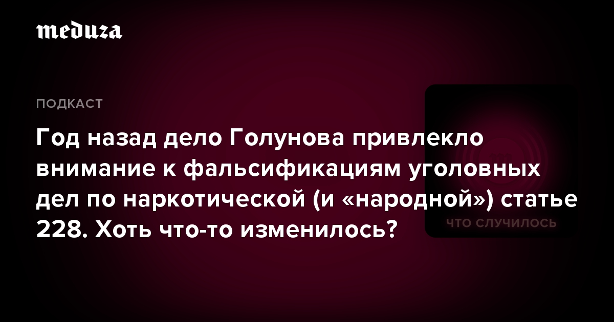 Дело Голунова — лишь одно из тысяч сфабрикованных дел о наркотиках. Как резонансное событие повлияло на правоприменение 228-й, «народной», статьи Уголовного кодекса? Какие реформы необходимо провести, чтобы снизить количество задержанных по этой статье? И как в России судят полицейских, подбросивших наркотики?