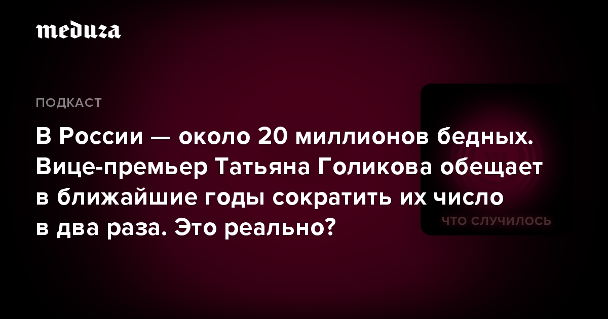 Россия — бедная страна? Получится ли у Кремля снизить уровень бедности за четыре года? В новом эпизоде подкаста «Что случилось» на эти вопросы отвечает преподаватель факультета экономики Европейского университета в Санкт-Петербурге Юлия Раскина.