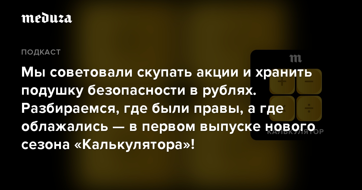 Мы советовали скупать акции и хранить подушку безопасности в рублях. Разбираемся, где были правы, а где облажались — в первом выпуске нового сезона «Калькулятора»!