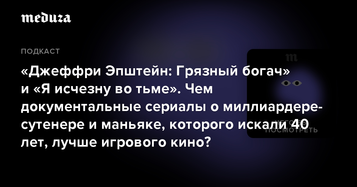 «Джеффри Эпштейн: Грязный богач» и «Я исчезну во тьме». Чем документальные сериалы о миллиардере-сутенере и маньяке, которого искали 40 лет, лучше игрового кино?