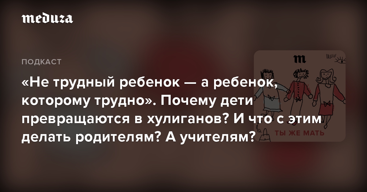 «Не трудный ребенок — а ребенок, которому трудно». Почему дети превращаются в хулиганов? И что с этим делать родителям? А учителям?