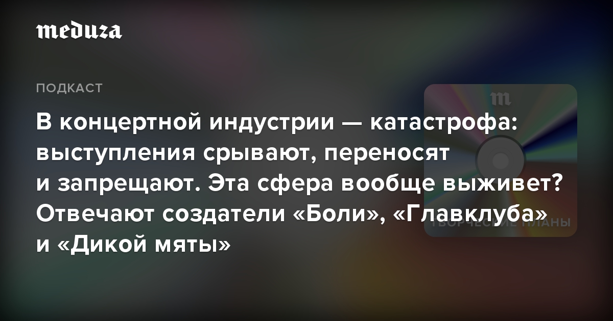 В концертной индустрии — катастрофа: выступления срывают, переносят и запрещают. Эта сфера вообще выживет? Отвечают создатели «Боли», «Главклуба» и «Дикой мяты»