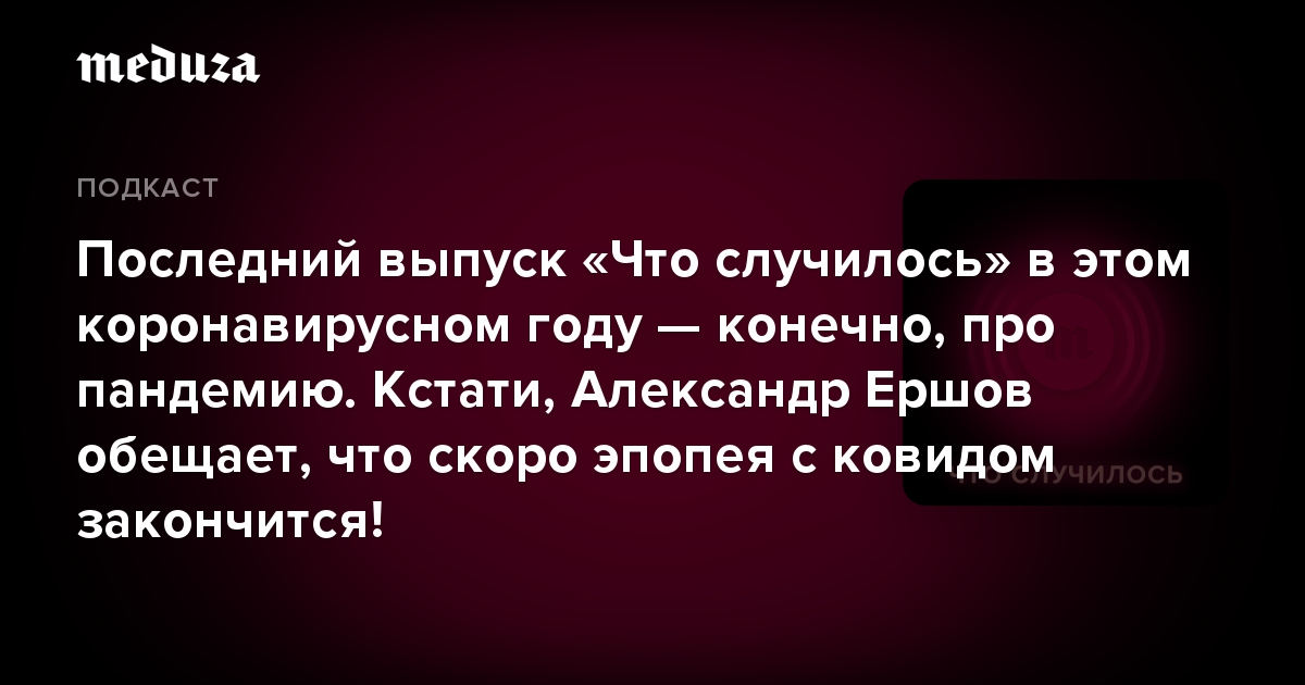«Медуза» целый год писала и говорила о коронавирусе. Все материалы опубликованы на специальном экране. В заключительном в году эпизоде подкаста «Что случилось» мы поговорили с научным редактором «Медузы» Александром Ершовым о последствиях пандемии и ее перспективах. А именно: