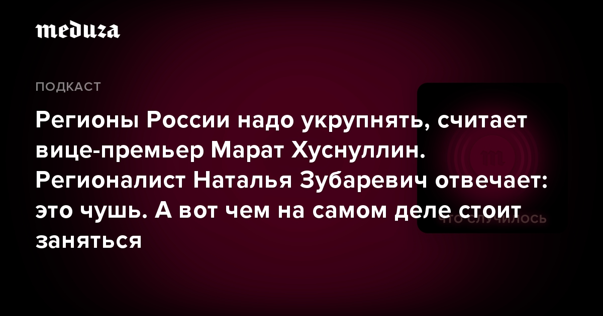 России не нужны 85 регионов и 20 тысяч муниципальных образований, заявил 27 апреля вице-премьер Марат Хуснуллин. Хуснуллин сказал, что в России «есть ряд регионов, которые не в состоянии ничего выполнять». Но в каждом из них есть губернаторы и аппарат, с которыми вице-премьеру и президенту приходится взаимодействовать.