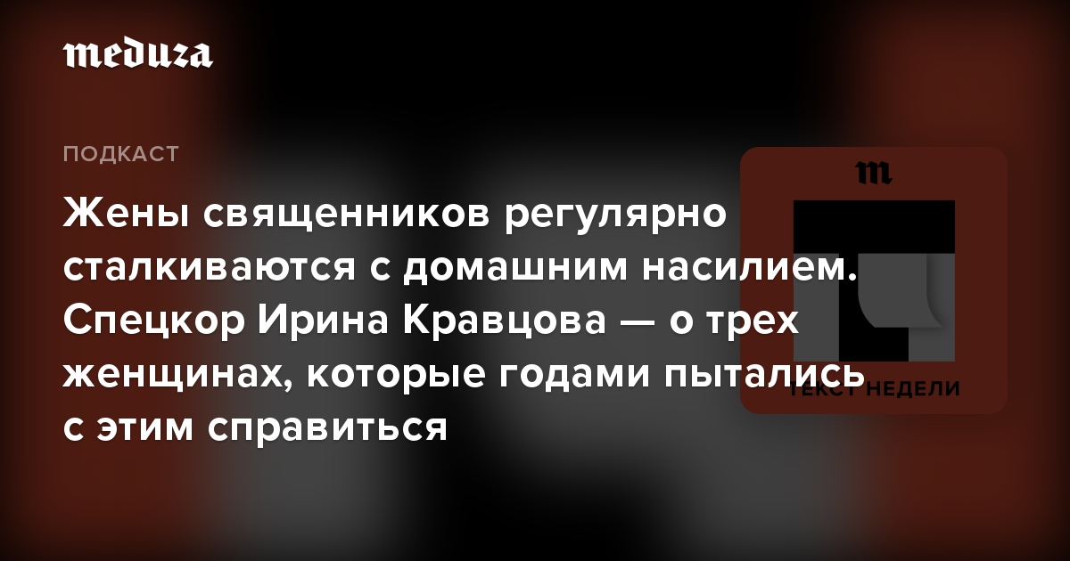 В подкасте «Текст недели» Ирина Кравцова объясняет, почему семьи священников — это отдельная категория, когда мы говорим о домашнем насилии. И отмечает, что на самом деле подобных случаев в церковной среде гораздо больше, чем три истории, о которых она написала.