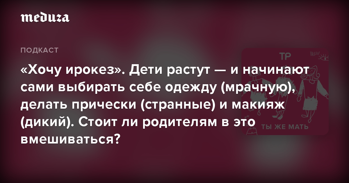 «Хочу ирокез». Дети растут — и начинают сами выбирать себе одежду (мрачную), делать прически (странные) и макияж (дикий). Стоит ли родителям в это вмешиваться?