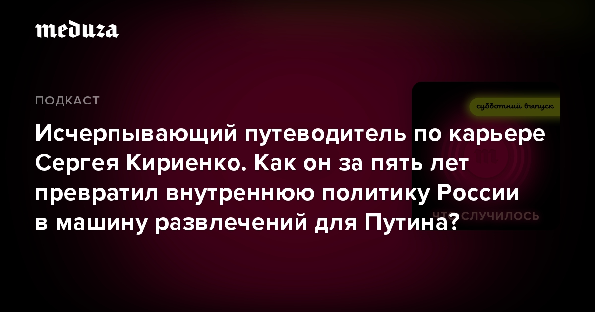 В этом уверены ведущие субботнего выпуска «Что случилось» — спецкор «Медузы» Андрей Перцев и социолог Константин Гаазе. В новом эпизоде подкаста они подробно анализируют политическую биографию Сергея Кириенко и пытаются понять, каким будет его следующий карьерный поворот. Кириенко возглавит МИД? Снова будет премьером? А может, именно он — преемник Путина?