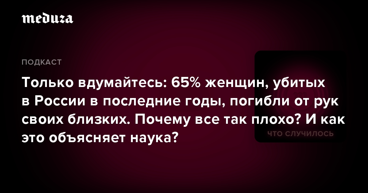 С 2011 по 2019 год в России 65,8 процента всех убийств женщин совершили их партнеры или родственники. Об этом говорится в исследовании Консорциума женских неправительственных организаций, который проанализировал 81 136 приговоров.