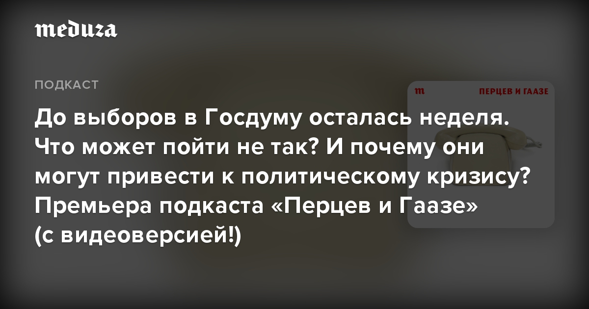 Первый выпуск «Перцев и Гаазе» — о том, что может пойти не так на предстоящих выборах в Госдуму, которые пройдут с 17 по 19 сентября. В выборах участвуют 14 партий, а жители семи регионов смогут проголосовать дистанционно.