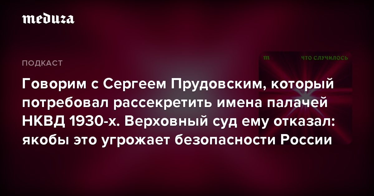В этом выпуске «Что случилось» говорим с историком Сергеем Прудовским, который долгое время пытается рассекретить архивную информацию о сотрудниках НКВД.