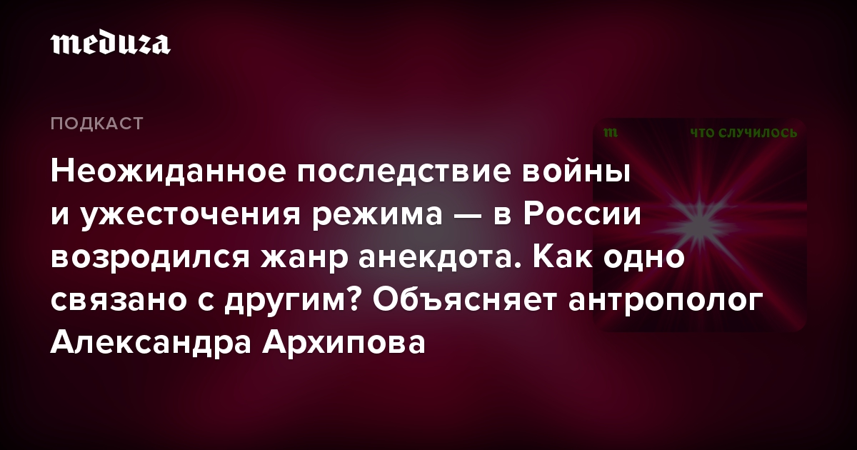 С одной стороны, россияне, публикуя анекдоты в социальных сетях, выражают свое несогласие с войной и ее последствиями. С другой — у них появляется ложное чувство активного вовлечения в протест. В новом эпизоде подкаста «Что случилось» разбираем этот феномен с антропологом Александрой Архиповой.