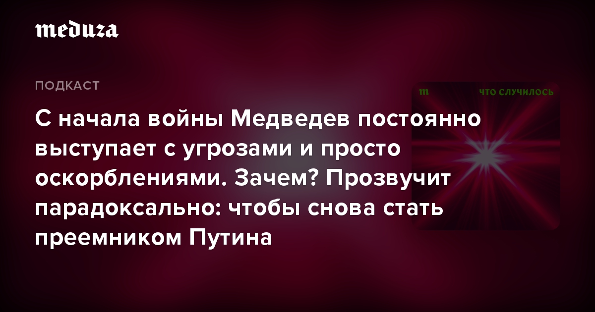 Заместитель председателя Совета безопасности России Дмитрий Медведев с начала войны публикует в своем телеграм-канале очень резкие посты. 7 июня он попытался это объяснить: «Меня часто спрашивают, почему мои посты в Телеграм такие резкие. Отвечаю — я их ненавижу. Они ублюдки и выродки. Они хотят смерти нам, России. И пока я жив, я буду делать всё, чтобы они исчезли». Бывший президент России не упомянул, кого он имеет в виду под местоимением «они».