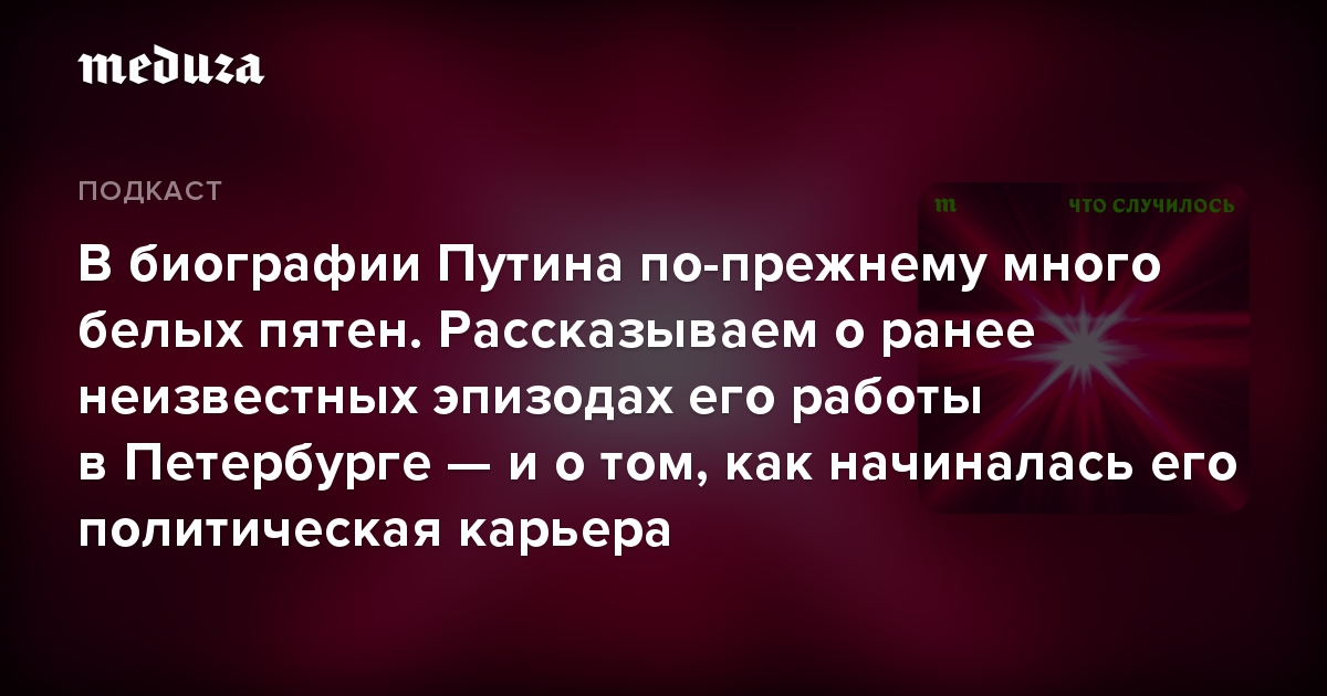Началу государственной карьеры Путина посвящено много текстов — книг и статей. Что нового стало известно о том периоде? Как сослуживцы Путина участвовали в коррупции, торговле наркотиками и делали настоящие деньги на мифической «красной ртути»? И какое отношение ко всему этому мог иметь тогдашний вице-мэр Петербурга Владимир Путин?