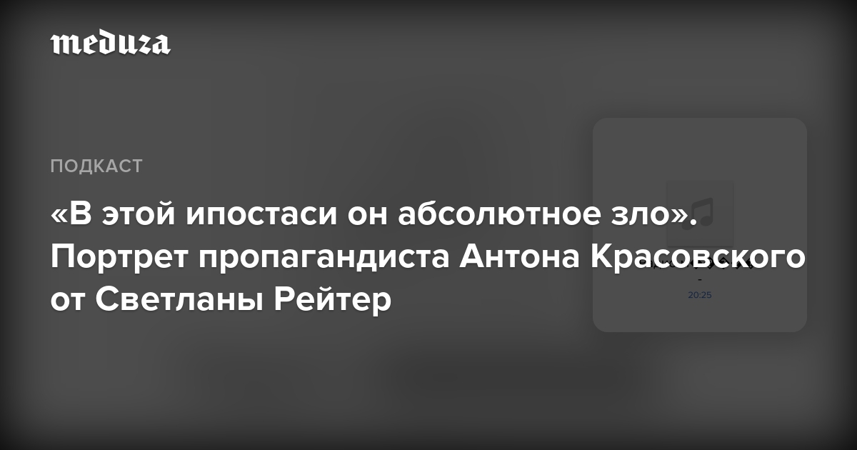 В подкасте «Текст недели» специальный корреспондент «Медузы» Светлана Рейтер рассказывает одну из таких историй — о топ-менеджере RT Антоне Красовском, который за два десятка лет проделал путь от журналиста либеральных СМИ и политтехнолога формально оппозиционных кампаний до яростного и бескомпромиссного милитариста, против которого введены Западом персональные санкции, а власти Украины расследуют уголовное дело о призывах к геноциду и насильственному свержению власти.
