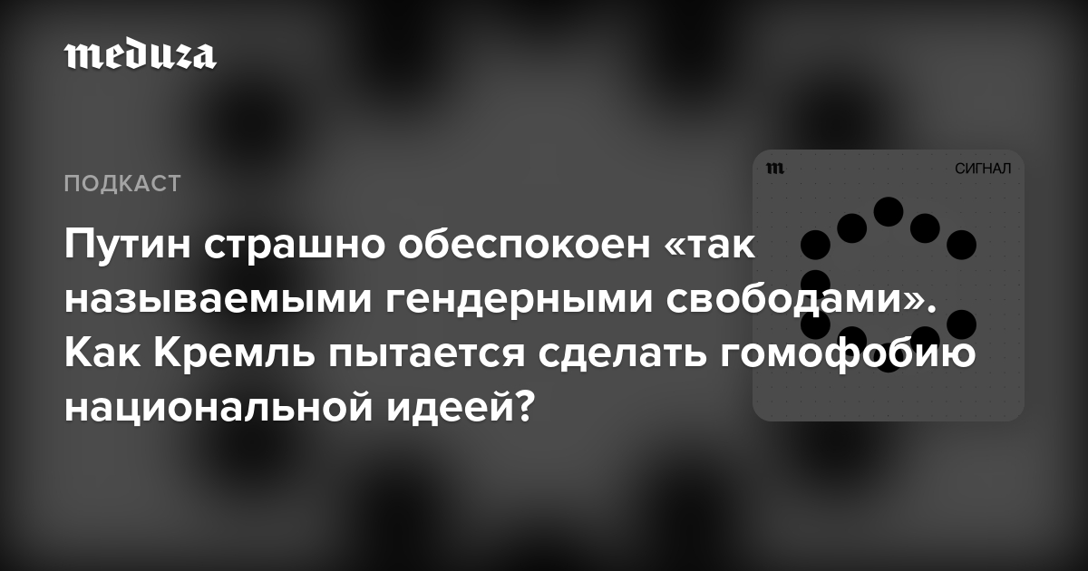 В России на законодательном уровне закреплена гомофобия. ЛГБТ-люди подвергаются преследованиям и ограничены в правах. Но почему Кремль решил сплотить россиян вокруг этой идеи? И получилось ли сделать «традиционные ценности» новой «духовной скрепой» в стране? Об этом — новый выпуск подкаста «Сигнал».