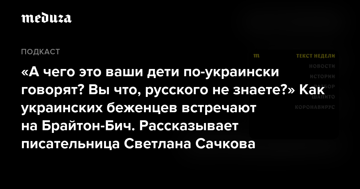 Писательница и журналист Светлана Сачкова, живущая в Нью-Йорке, по просьбе «Медузы» съездила в знаменитый бруклинский район Брайтон-Бич на берегу Атлантического океана, где многие десятилетия селились эмигранты из СССР, — и узнала, как его жители относятся к новой волне беженцев, бегущих от войны в Украине.