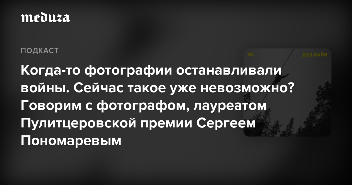 Ежедневно редакторы «Медузы» отбирают и публикуют главные кадры войны в Украине: снимки убитых, раненых, фото разрушенных городов. Таких изображений — тысячи. Мы видели ужасающие кадры из Бучи, Мариуполя, Изюма. Это только фиксация происходящего или нечто большее? Могут ли фотографии (как это было с фото «Ужас войны» во Вьетнаме) влиять на общественное мнение и политические решения? В новом выпуске «Дедлайна» говорим об этом с фотографом, лауреатом Пулитцеровской премии Сергеем Пономаревым.