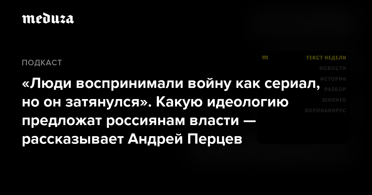 Специальный корреспондент и политический обозреватель «Медузы» Андрей Перцев рассказывает, какие изменения проводит сейчас Кремль на идеологическом фронте.