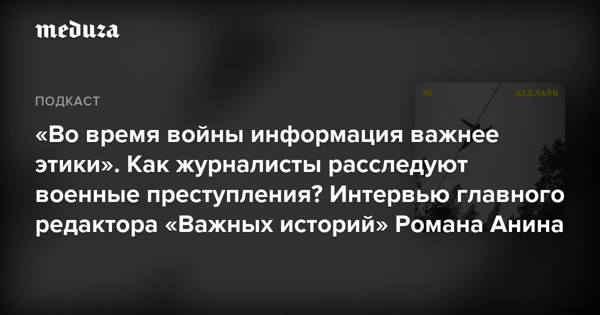 🎧 «Дедлайн» — подкаст «Медузы» о том, как изменилась работа медиа и журналистов с началом войны в Украине. Слушайте на всех основных аудиоплатформах и подписывайтесь, чтобы не пропустить новые эпизоды.