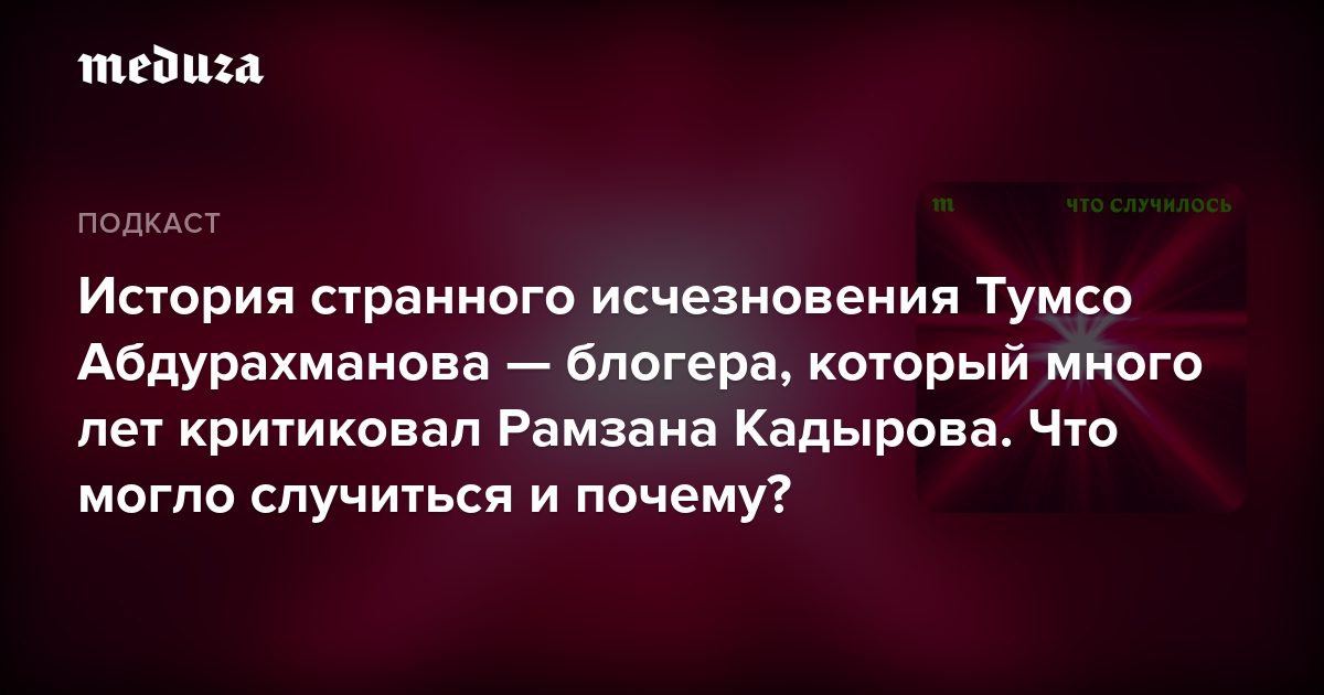 Что могло случиться с Тумсо Абдурахмановым? И как преследуют тех, кто решается на критику власти в Чечне? Говорим об этом с Екатериной Вансловой, руководительницей северокавказского филиала «Команды против пыток».