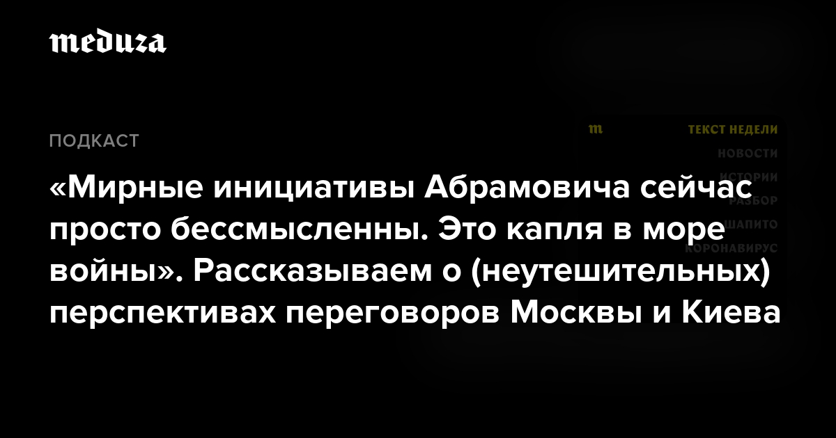 Как выяснила «Медуза», контакты между странами все же сохраняются и в них задействованы, например, миллиардер Роман Абрамович, кинопродюсер Александр Роднянский и бывший глава департамента культуры Москвы Сергей Капков. Что обсуждали Москва и Киев раньше и о чем говорят сейчас в канун годовщины российского вторжения, в подкасте «Текст недели» рассказывают специальный корреспондент «Медузы» Светлана Рейтер и заместитель главного редактора рассылки Kit Елизавета Антонова.