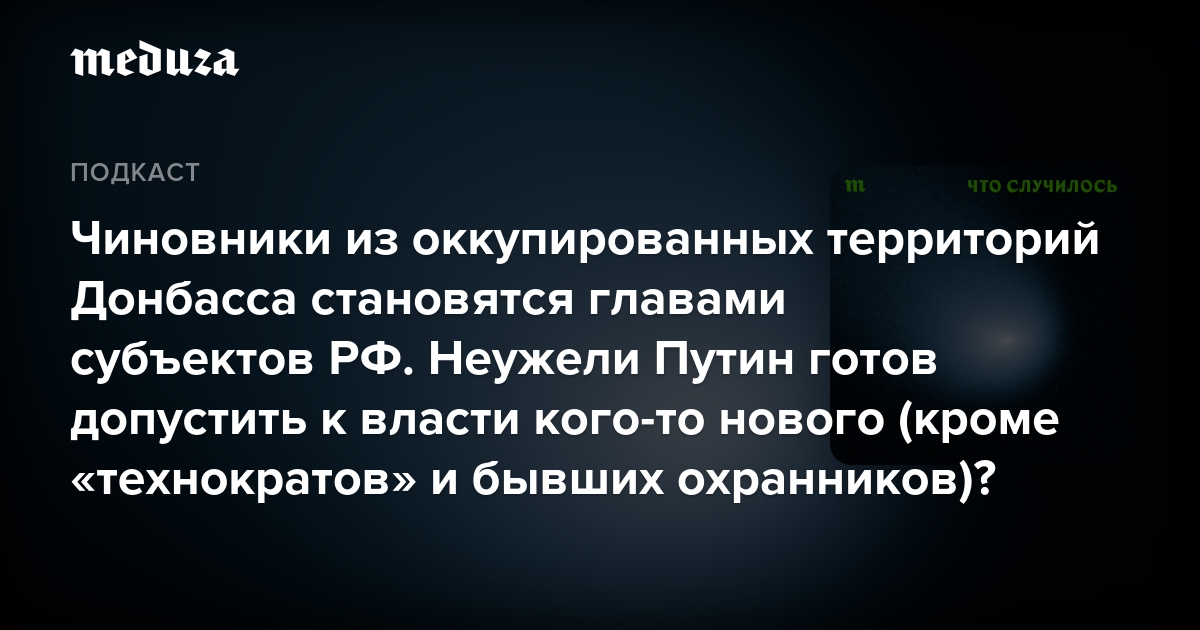 Вместе со специальным корреспондентом «Медузы» Андреем Перцевым разбираемся, становится ли работа на аннексированных территориях Украины карьерным лифтом для российских чиновников — и могут ли они сформировать новый состав российских элит.