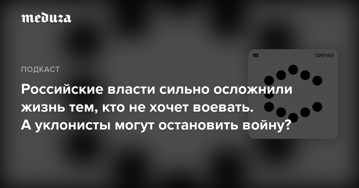Хотя вообще-то есть немало юридических, политических и моральных аргументов в пользу уклонения от военной службы. Разбираем их в новом выпуске подкаста «Сигнал».