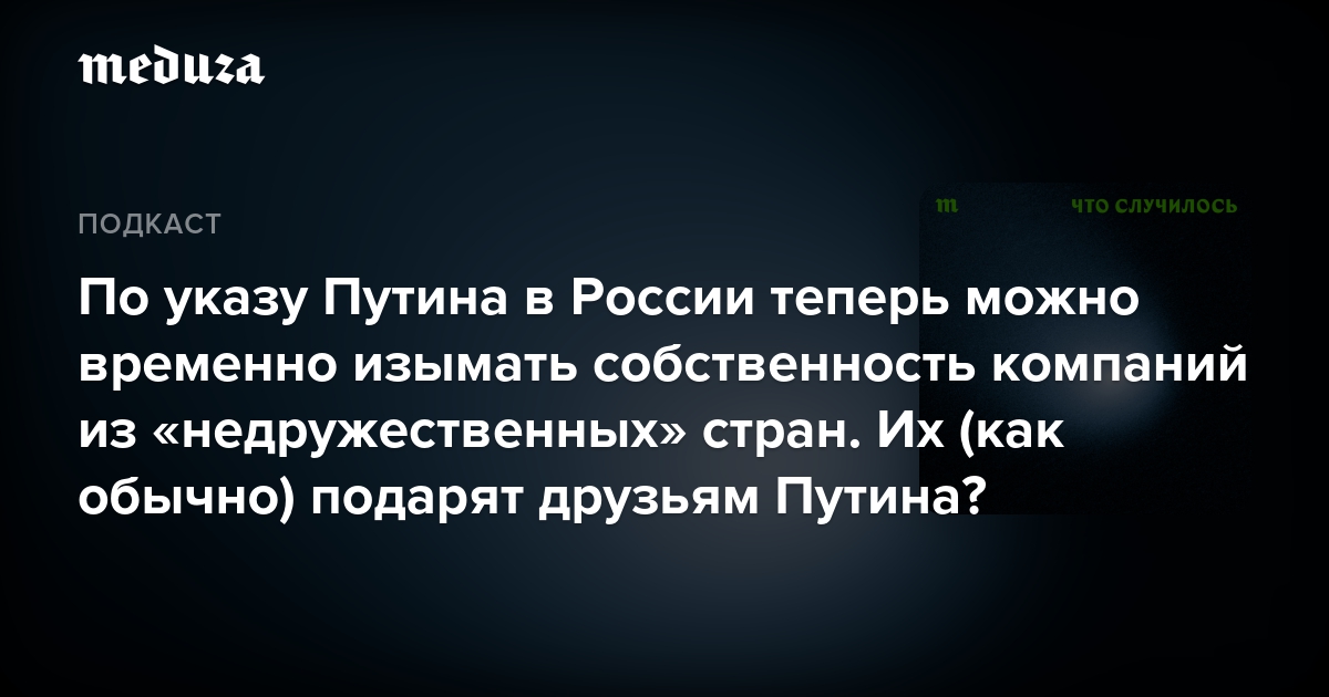 Объясняем, какой механизм национализации придумали российские власти, — и разбираемся, кто может от этого выиграть. Гостья выпуска — Александра Прокопенко, приглашенный эксперт Центра Карнеги и Немецкого совета по международным делам.