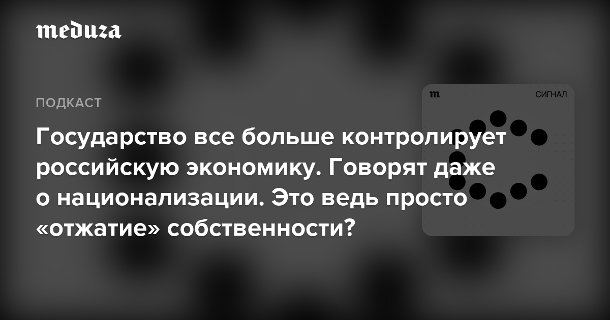 Новый выпуск подкаста «Сигнал» — о национализации вообще и о том, что называют национализацией в России.