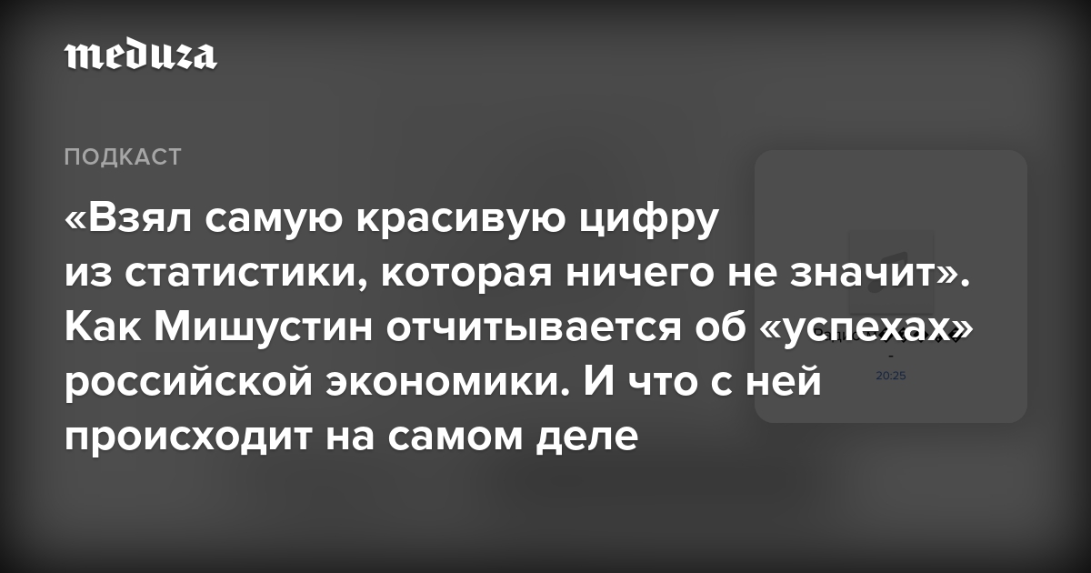Формально глава кабмина не соврал, но это все равно откровенная манипуляция со статистикой. Почему все не так уж радужно и что сейчас происходит с российской экономикой на самом деле, в подкасте «Текст недели» объясняет специальный корреспондент «Медузы» Маргарита Лютова.