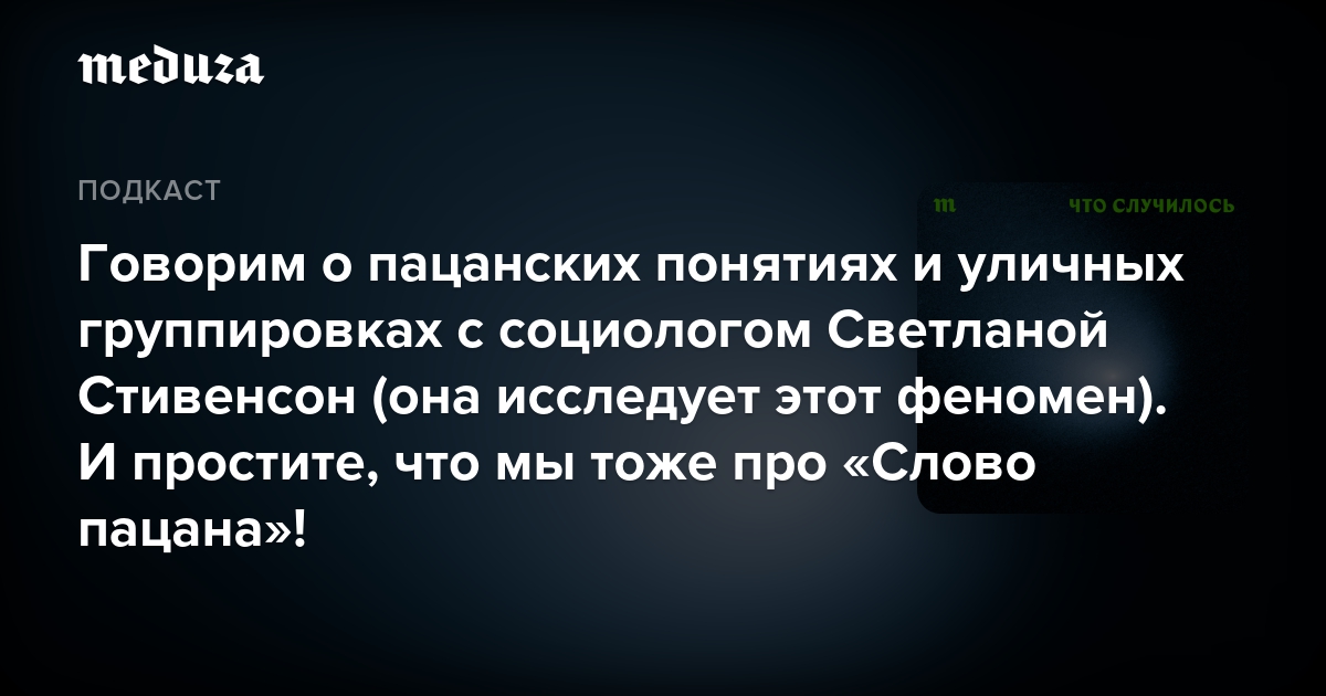 Говорим о том, как «пацанская» культура повлияла на общество в России, включая высшее политическое руководство страны. Гостья этого выпуска — Светлана Стивенсон, профессор социологии Университета Лондон Метрополитен и автор книги «Жизнь по понятиям. Уличные группировки в России».