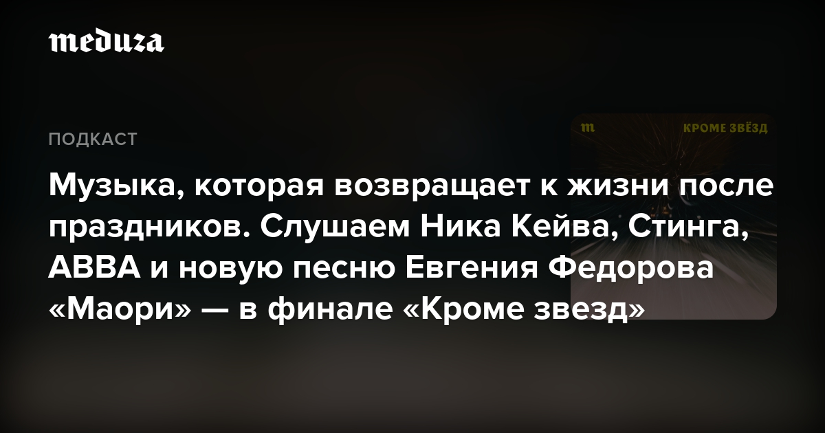 🎙 «Кроме звезд» есть на всех основных аудиоплатформах и, конечно, в приложении «Медузы» — этот способ читать и слушать нас самый надежный, поскольку приложение умеет обходить блокировки и работает без VPN.