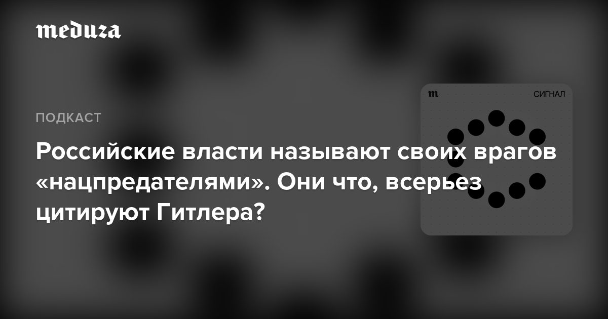 Свежий эпизод подкаста «Сигнал» — как о том, откуда взялись «нацпредатели», так и о том, почему Кремль часто цитирует нацистов.