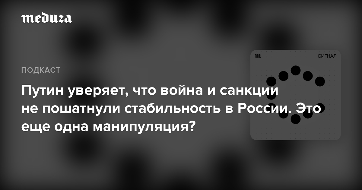 Свежий эпизод подкаста «Сигнал» — о том, что отличает стабильную страну от нестабильной и зачем российские власти убеждают россиян, что без Путина в стране наступит коллапс и раздрай.