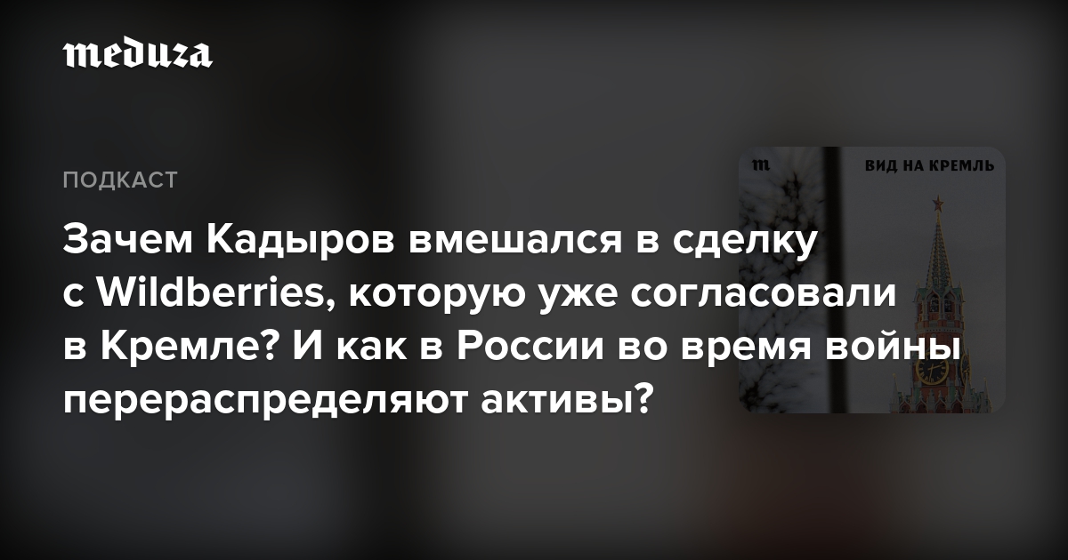 В этом эпизоде Александра Прокопенко и Андрей Перцев рассуждают, зачем Кадыров вмешался в сделку (которую уже согласовали в Кремле) и какую роль в разделе Wildberries играет сенатор Сулейман Керимов. А еще рассказывают, как теперь — во время войны с Украиной — власти перераспределяют активы в России.