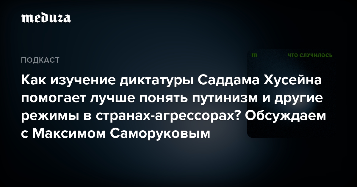 Говорим с исследователем Берлинского центра Карнеги по изучению России и Евразии Максимом Саморуковым о логике диктаторов (не только Саддама Хусейна, но и Владимира Путина), которые прибегают к внешней агрессии.