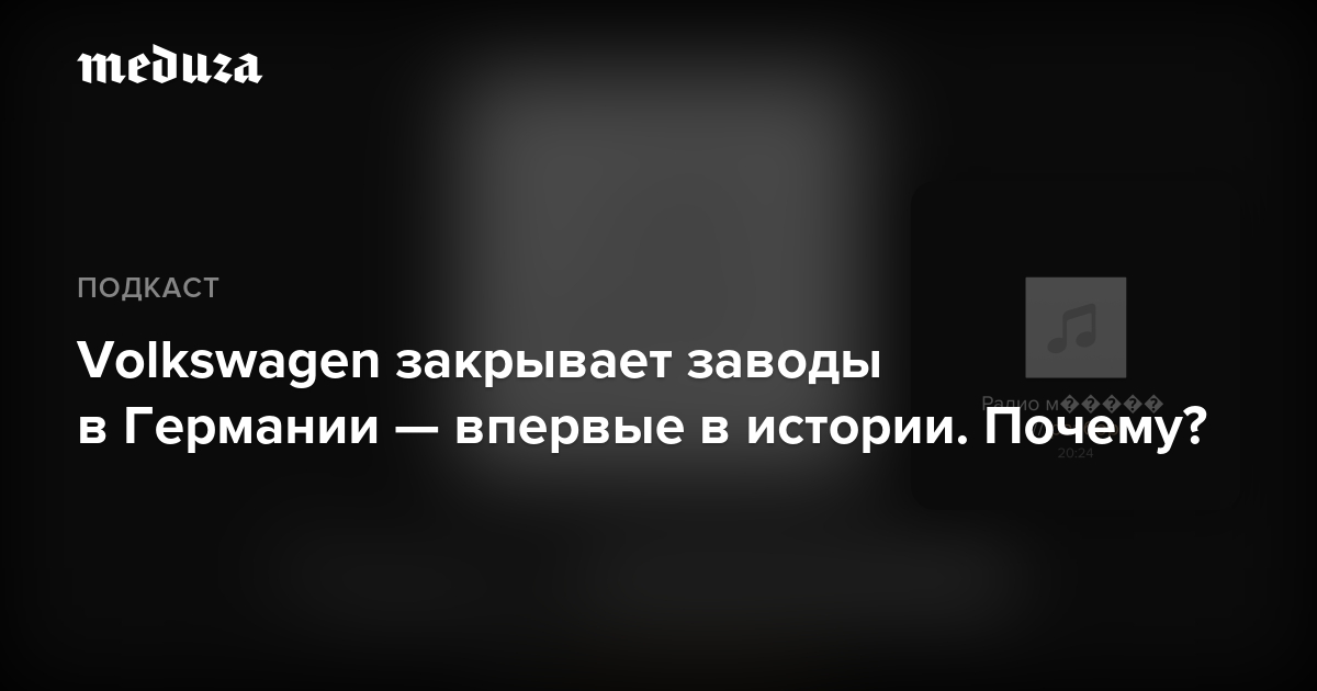 Что происходит с Volkswagen? Как война России с Украиной повлияла на немецкую экономику и автопром? Почему падают продажи электрокаров в Европе? И как китайские машины теснят западных автогигантов? Послушайте аудиоверсию разбора «Медузы». Прочитать текст можно здесь.