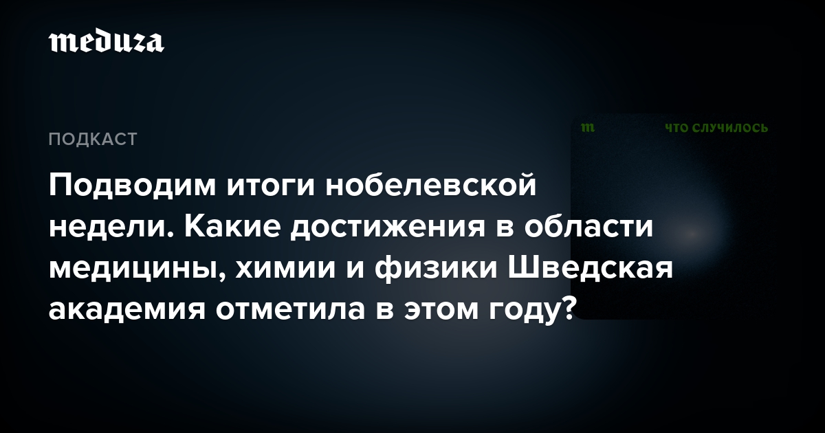 Подводим итоги нобелевской недели и объясняем, за что присуждались премии в 2024 году. Гость этого выпуска — Илья Кабанов, научный журналист и автор телеграм-канала «Лайфлонг муки».