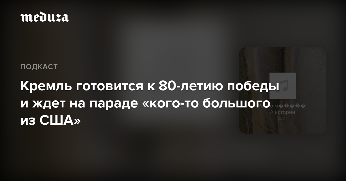 При этом для Кремля разговоры о российско-украинской войне, мероприятия в разных городах, декорации и сувениры — не главное. Гораздо важнее для чиновников парад в Москве и кто из зарубежных гостей готов на него приехать. Собеседники «Медузы» говорят, что Путин ожидает «кого-то большого из США».