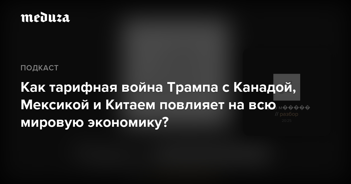 Какие товары пострадают от новых пошлин? Чем Мексика, Канада и Китай ответили Трампу? Насколько вырастут цены в США? И как это отразится на глобальной экономике? Послушайте аудиоверсию разбора «Медузы». Прочитать карточки можно здесь.