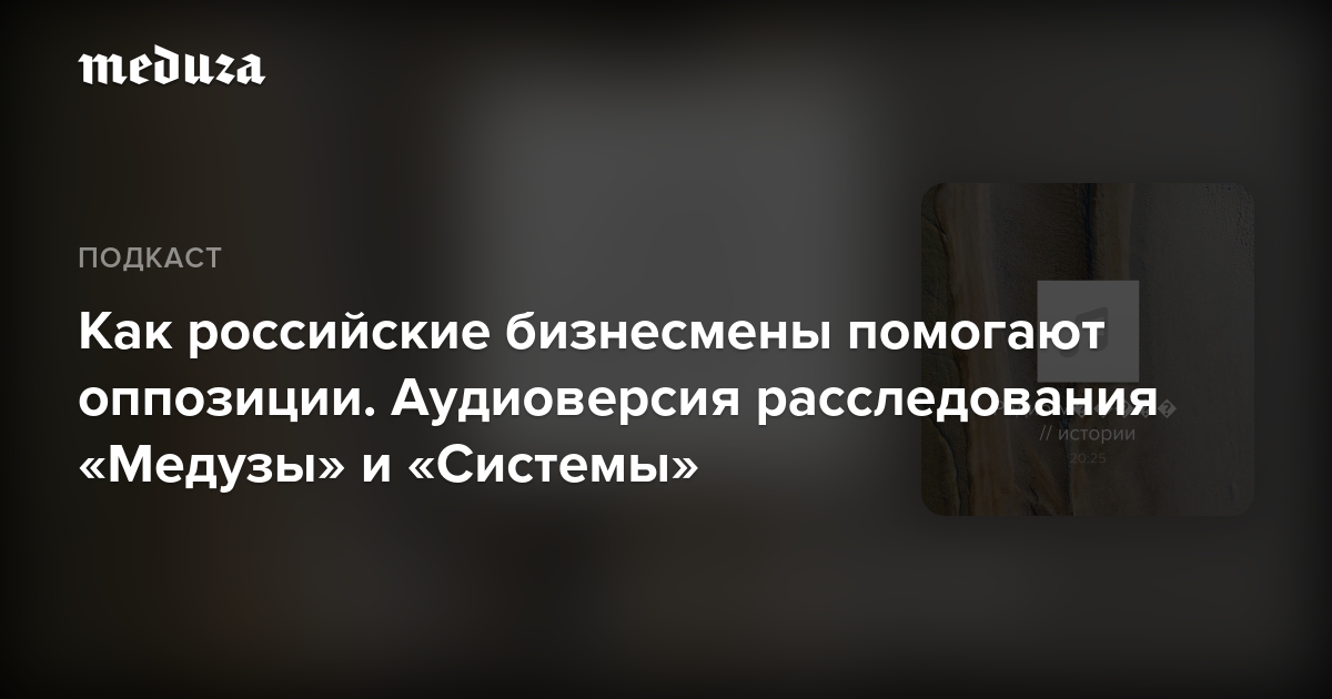 Зачем богатые люди финансируют антипутинское сопротивление? И на что рассчитывают такие бизнесмены? Послушайте аудиоверсию материала «Медузы» и «Системы». Прочитать текст можно здесь.